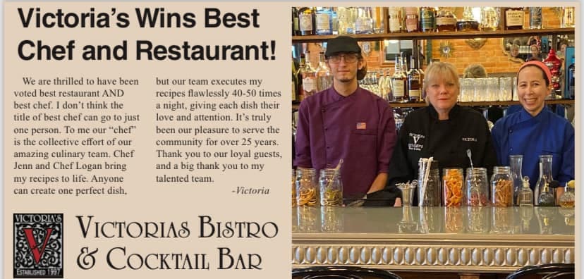 For those who haven’t yet heard of Victoria’s Bistro & Cocktail Bar, this cozy establishment transports you to an authentic European dining experience the second you enter their door. The ambiance is intimate, cozy, and something special – a true feast for the senses – with a delectable aroma, conversation and laughter of guests, and smiles from their welcoming staff. No large TV’s or loud music will distract you from the good company here.